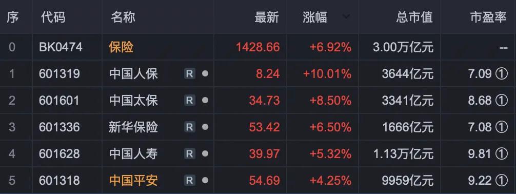 今日,大金融板块强势爆发,成为市场焦点。保险、证券股狂拉,保险指数一度涨近 7.8%。个股表现也十分亮眼,保险板块中,中国人保涨停,中国太保涨超 8%;